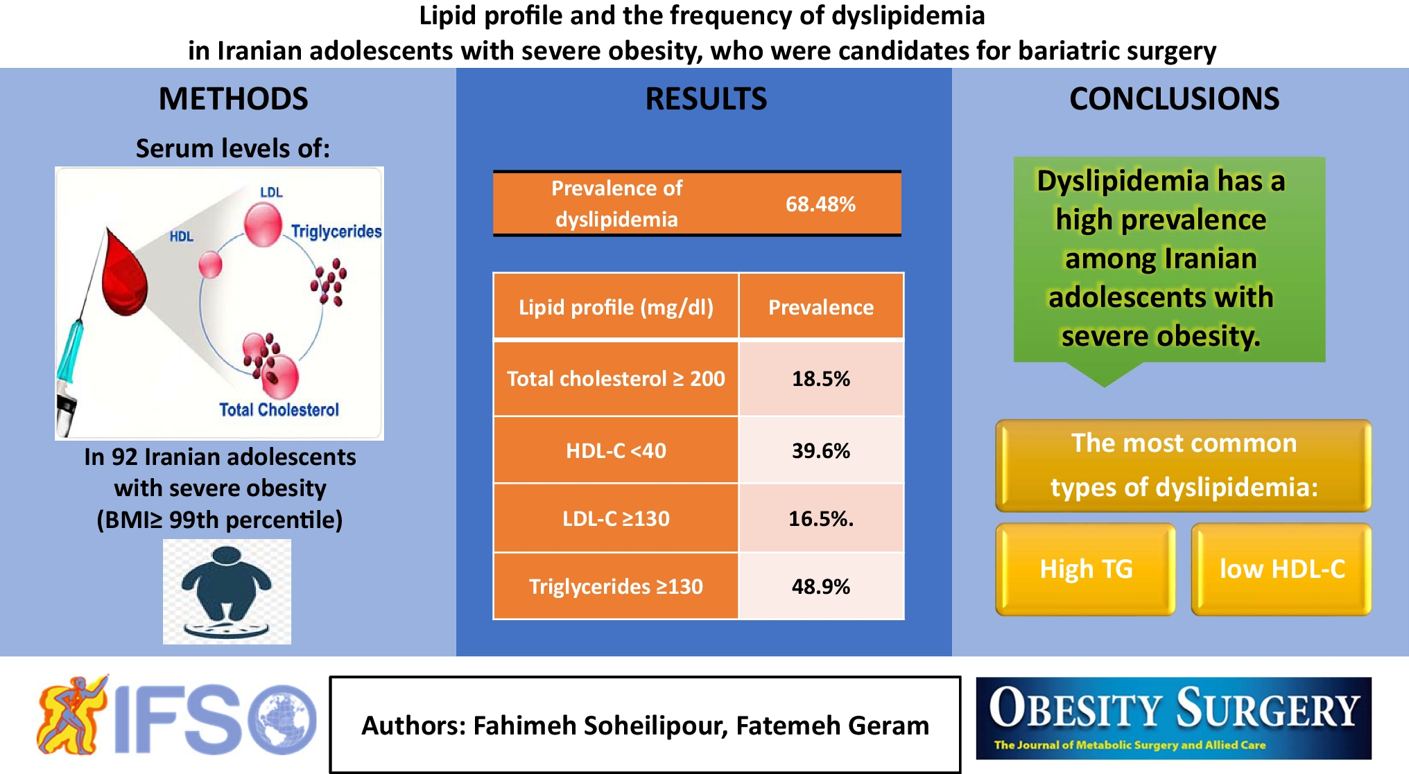 - Lipid Profile and the Frequency of Dyslipidemia in Iranian Adolescents with Severe Obesity, Who Were Candidates for Bariatric Surgery