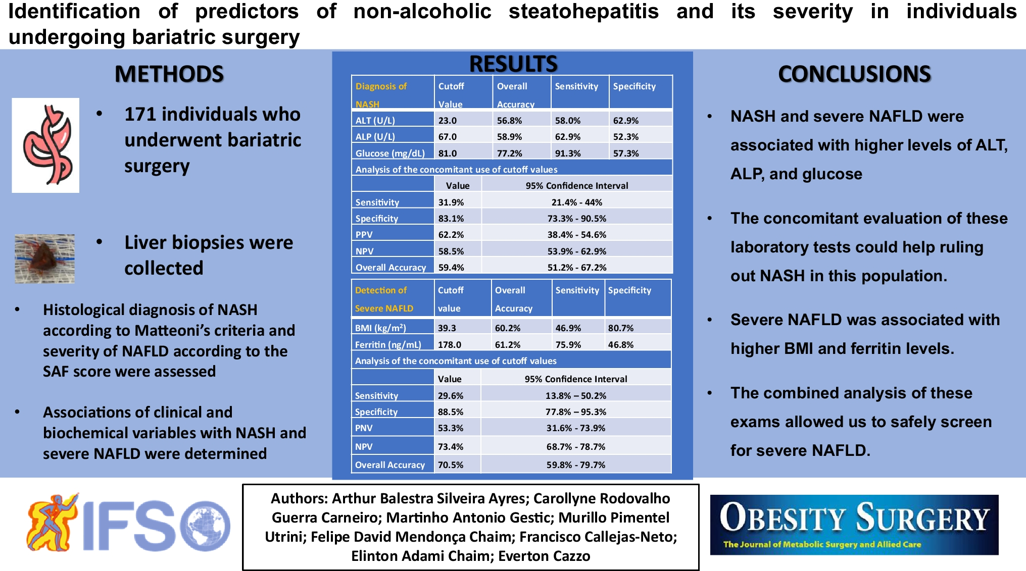 This is an analytical cross-sectional study which included individuals undergoing bariatric surgery. Participants were histologically classified according to the presence NASH and severity of NAFLD. Demographic, clinical, anthropometric, and biochemical aspects were analyzed and compared.