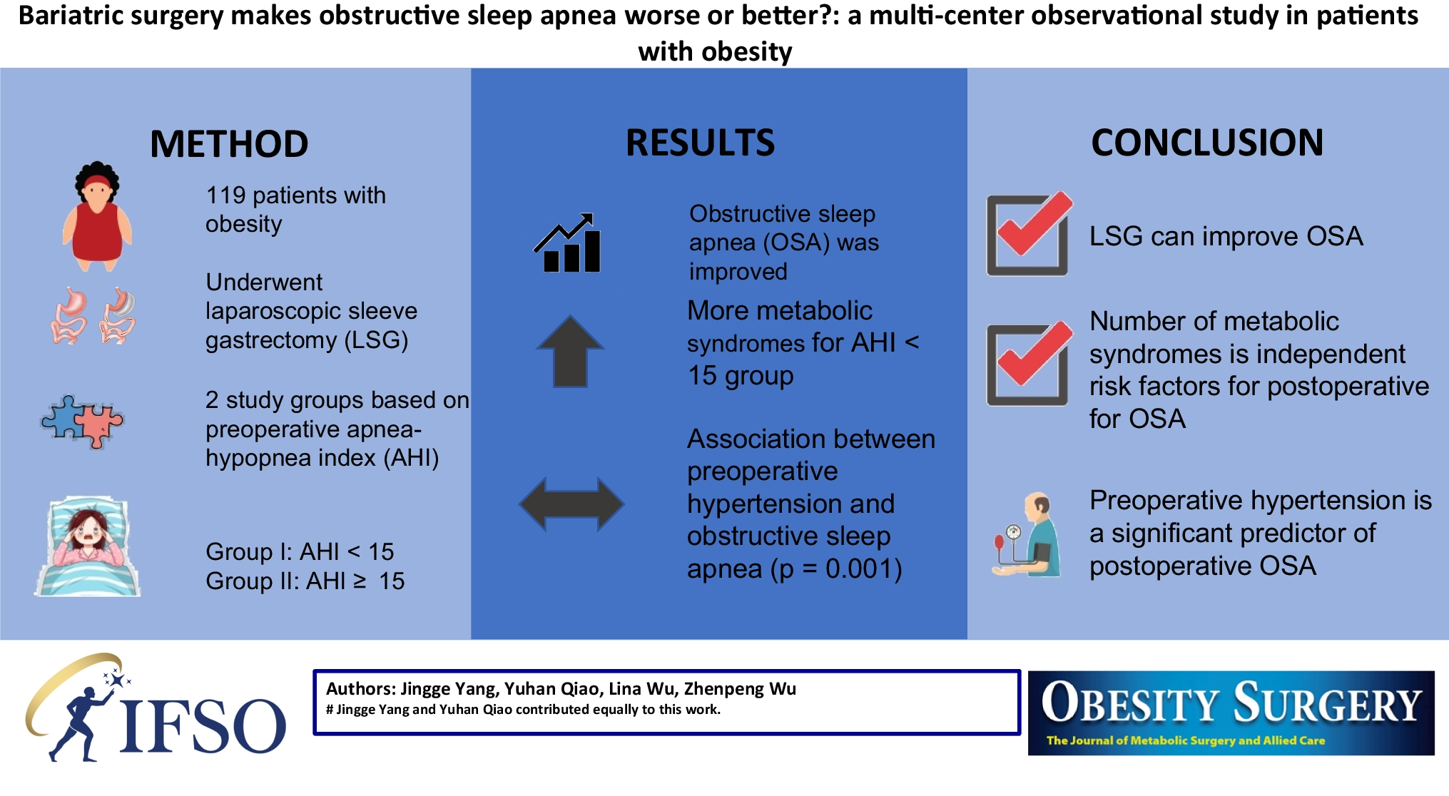 - Sleeve Gastrectomy Surgery makes Obstructive Sleep Apnea Worse or Better?: a Multi-Center Observational Study in Patients with Obesity